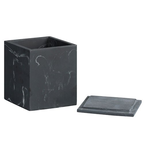 Kvalitets Calma opbevaringsbøtte i moderne og minimalistisk design, der kommer fra tyske Kesper. Opbevaringsbøtten er fremstillet i kraftigt polyresin og forsynet med låg. Fuldend dit badeværelsestema med den moderne Calma serie, hvor du kan tilkøbe sæbedispenser, tandbørsteholder og sæbeskål i samme design.