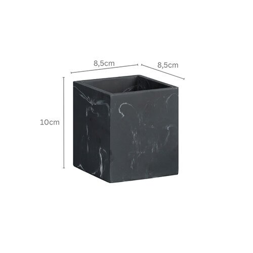 Opbevaringsbøtten måler ca. (H x B x D) 10 x 8,5 x 8,5 cm.