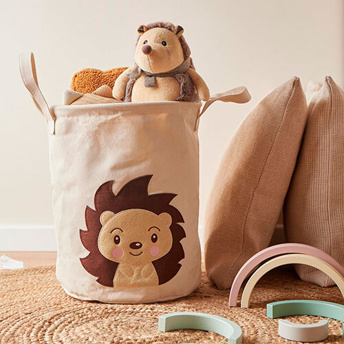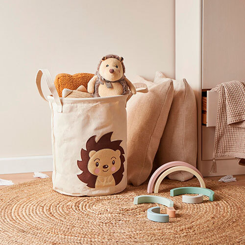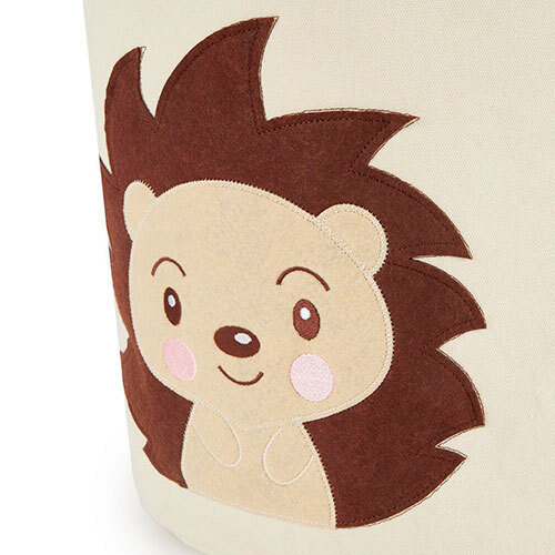 Utroligt sød Piksi pindsvin opbevaringskurv, der giver dig mulighed for let at holde orden i legetøj, tøj og andre småting på børneværelset. Fremstillet i god kvalitet i en blanding af 60% bomuld og 40% polyester, der kommer fra tyske Bieco. Forsynet med vandtæt PE-belægning på indersiden, der sørger for at kurven er fugtresistent, hvilket gør den yderst anvendelig som vasketøjskurv. Udstyret med metalring i toppen for øget stabilitet, samt to bærehåndtag for nem transport. Kan rengøres med mild sæbe og en fugtig klud. Produktet er testet fri for skadelige stoffer.