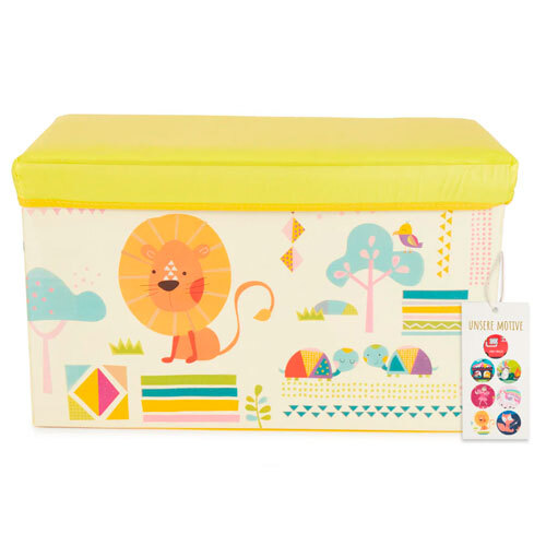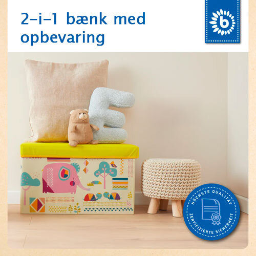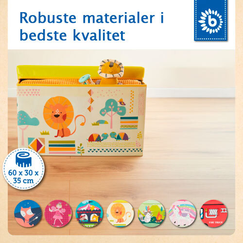 Smart legetøjskasse med siddeplads på toppen i rigtig god kvalitet, der kommer fra tyske Bieco. Stabil opbevaringskasse med god plads, der er fremstillet i MDF træ i siderne med blød og behagelig belægning og med blød og komfortabel siddeplads på toppen. Med denne legetøjskasse bliver oprydningen lidt sjovere. Hurtig og nem at folde sammen igen, hvis den skal gemmes væk i skabet, når den ikke er i brug. Legetøjskassen er ligeledes testet fri for skadelige stoffer. Den tåler maksimal belastning på ca. 80 kg. ved centreret tryk på låget.