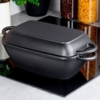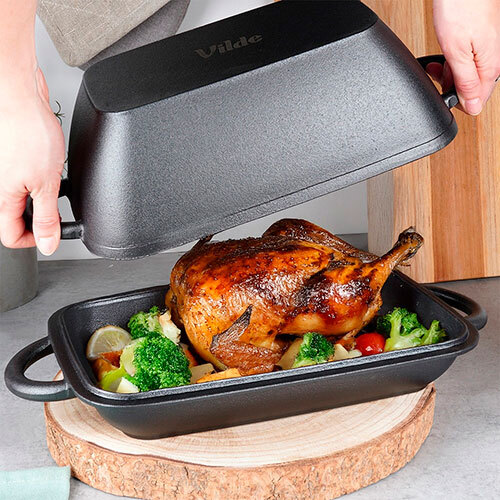 Kvalitets Cast Line ildfast fad med låg, der kommer fra Vilde. Fadet er ekstremt slidstærkt og nemt at rengøre efter brug, men det tåler ikke opvaskemaskine. Fremstillet i robust støbejern med gode håndtag på både øverste og nederste del.