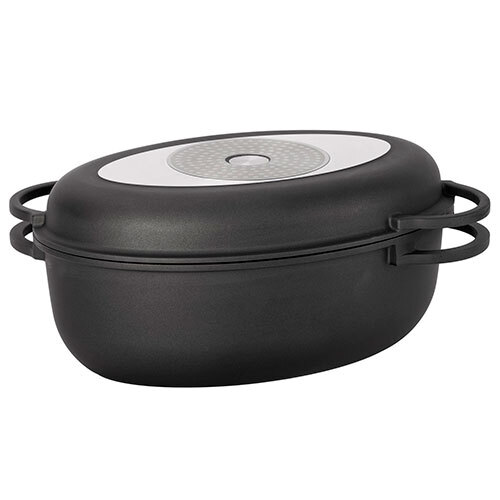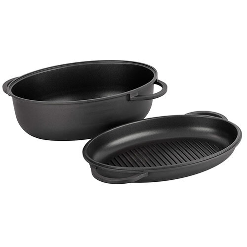 Kvalitets ildfast fad med låg, der også kan bruges som grillpande. Fadet er ekstremt slidstærkt og nemt at rengøre efter brug. Fadet er fremstillet i holdbart aluminium med langtidsholdbar 2-lags ILAG non-stick belægning og tåler temperatur op til 180°C. Sidetykkelse på ca. 2,2 mm. og bundtykkelse på ca. 4,0 mm. Kommer fra Chefware.