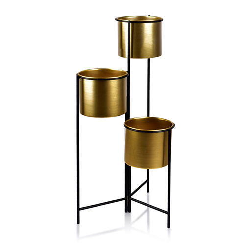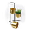 Dekorativ planteopsats, der er fremstillet i metal med sort og guldfarvet pulverlakering, som kommer fra Mondex. Planteopsatsen er forsynet med tre holdere til planter. Med denne planteopsats har du mulighed for at stille dine blomster i forskellige højder, hvilket giver en flot og dekorativ effekt.