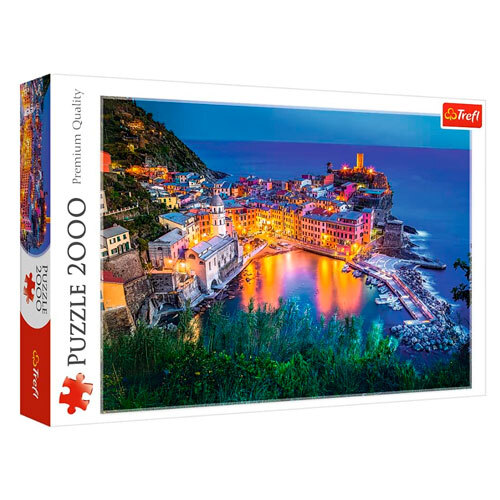Underholdende Vernazza at dusk puslespil med 2000 brikker til puslespilselskeren. Perfekt til en regnvejrsdag, hvor du trænger til at koble af. Kan også være en oplagt fællesaktivitet for hele familien, der kan sætte sig sammen til hygge og nærvær ved puslespillet. Puslespillet er fremstillet i 100% FSC-certificeret pap og kommer fra velkendte og kvalitetsstemplede Trefl.