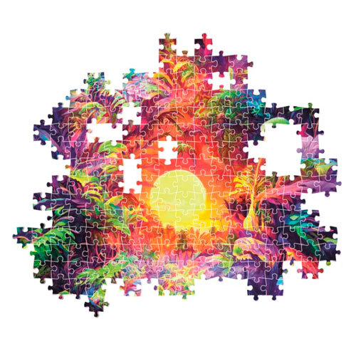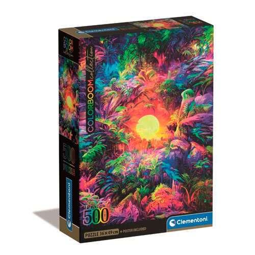 Underholdende puslespil med motiv af farverig jungle med 500 brikker til puslespilselskeren. Der medfølger også plakat med samme motiv i pakken. Perfekt til en regnvejrsdag, hvor du trænger til at koble af. Kan også være en oplagt fællesaktivitet for hele familien, der kan sætte sig sammen til hygge og nærvær ved puslespillet. Puslespillet er fremstillet i 100% FSC-certificeret pap og kommer fra velkendte og kvalitetsstemplede Clementoni i Italien, hvor det også er produceret.