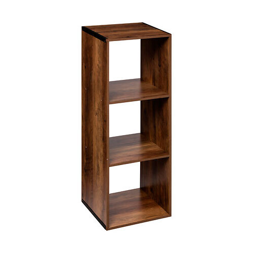 Praktisk Mix n' Modul reol i naturligt design, der er fremstillet i 100% FSC-certificeret MDF træ med laminat i industrielt design, som kommer fra franske 5five. Reolen er forsynet med tre rum og giver en optimal kombination af funktionalitet og design i et. Rummene i reolen passer til vores lagerførte Mix n' Modul opbevaringskasser i forskellige størrelser.