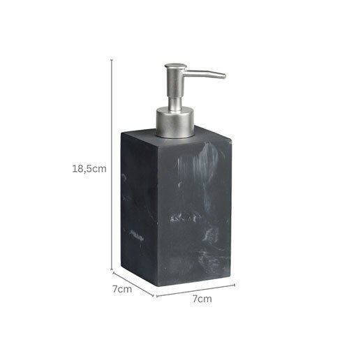 Sæbedispenseren måler ca. (H x B x D) 18,5 x 7 x 7 cm.