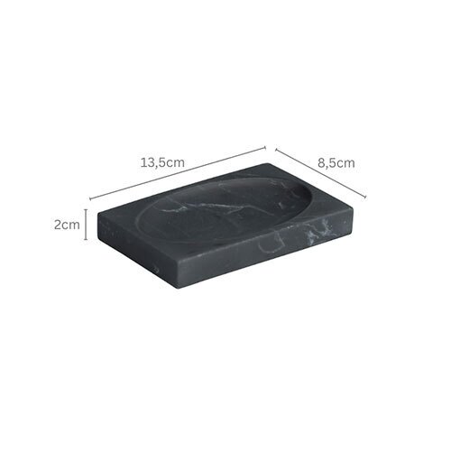Sæbeskålen måler ca. (H x B x D) 2 x 13,6 x 8,6 cm.