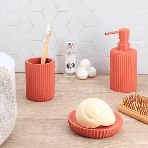 Nydelig Merle sæbeskål, der er fremstillet i robust keramik med terracotta farve. Her kan du få en moderne badeværelsesserie fra franske Tendance, hvor du kan tilkøbe en hel kollektion af matchende tilbehør til badeværelset.