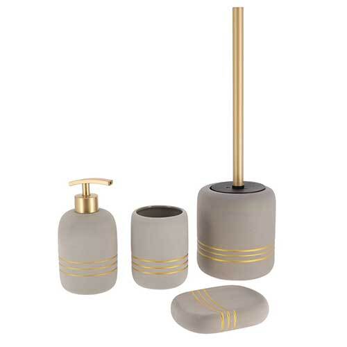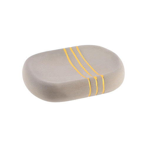 Nydelig Stripes sæbeskål, der er fremstillet i robust stentøj med grå og guldfarve. Her kan du få en moderne badeværelsesserie fra franske Tendance, hvor du kan tilkøbe en hel kollektion af matchende tilbehør til badeværelset.