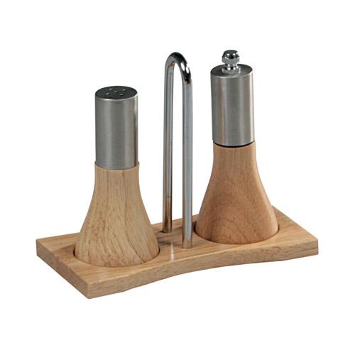 Dette funktionelle salt- og pebersæt er tidløst, enkelt og smukt at se på. Salt- og pebersættet leveres samlet i en flot holder med håndtag, så det er nemt at flytte rundt. Sættet består af en peberkværn, saltstrøer og en praktisk bakke med håndtag. Sættet er fremstillet i gummitræ med rustfrit stål top og håndtaget på bakken er fremstillet i metal.
