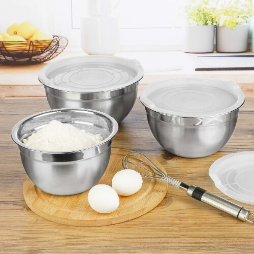 Røreskåle 3'er sæt med låg - Rustfrit stål