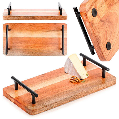 Lækkert kvalitets skære- og serveringsbræt, der er flot udført i smukt akacietræ med håndtag i sort metal. Med dette serveringsbræt får du mulighed for at præsentere din mad på den mest indbydende måde.