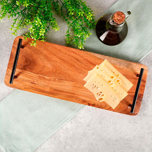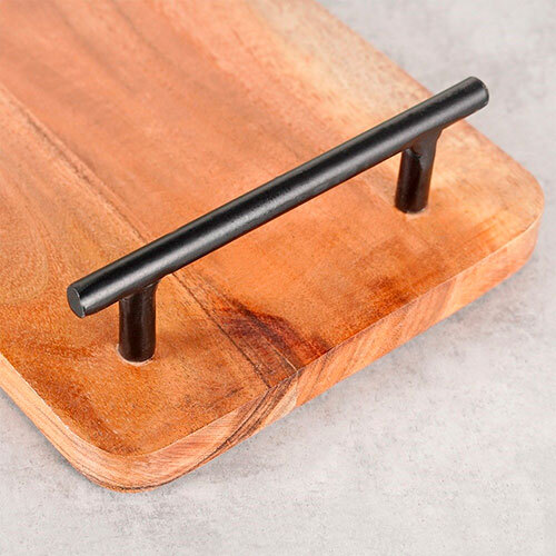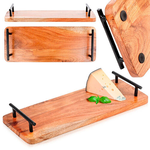 Lækkert kvalitets skære- og serveringsbræt, der er flot udført i smukt akacietræ med håndtag i sort metal. Med dette serveringsbræt får du mulighed for at præsentere din mad på den mest indbydende måde.