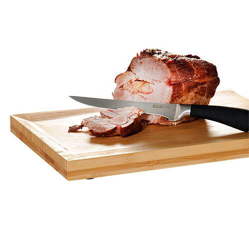Kvalitets skære- og serveringsbræt, der er flot udført i 100% FSC-certificeret bambus, der kommer fra tyske Kesper. Forsynet med 2 stk. højdejusterbare fødder under bunden, så saften fra kødet kan samle sig i enden af skærebrættet. Med dette skærebræt får du mulighed for at præsentere din mad på den mest indbydende måde.