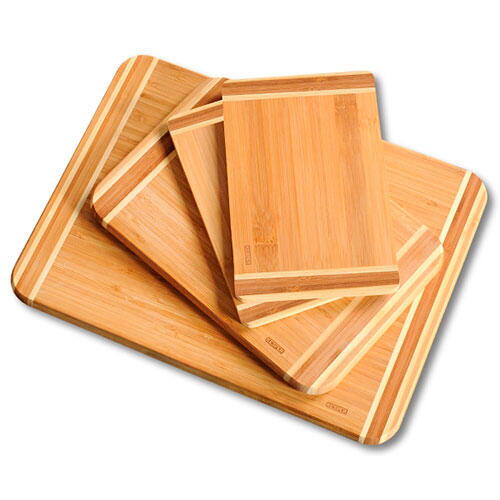 Praktisk skærebræt sæt, der er flot udført i massivt bambus med 4 forskellige skærebrætter i sættet. Bambus er en yderst velegnet træsort som skærebræt, da det er et utroligt holdbart materiale, der er skånsomt mod knivens skarphed og nemt at rengøre. Produktet er fremstillet i 100% FSC-certificeret bambus.