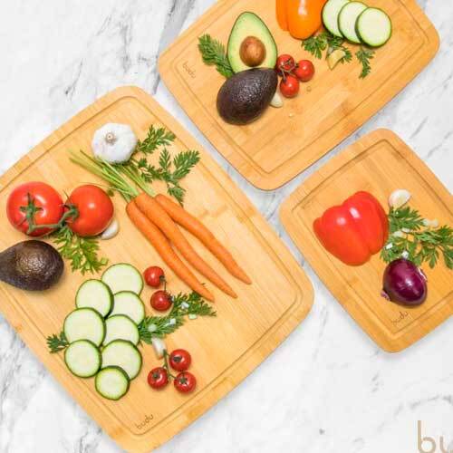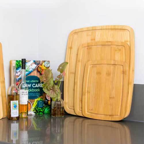 Kvalitets skærebrætter i sæt, der er flot udført i 100% FSC-certificeret bambus med 3 forskellige skærebrætter, fra hollandske Budu. Bambus er en yderst velegnet træsort som skærebræt, da det er et utroligt holdbart materiale, skånsomt mod knivens skarphed og nemt at rengøre. Alle skærebrætterne er forsynet med saftrille.