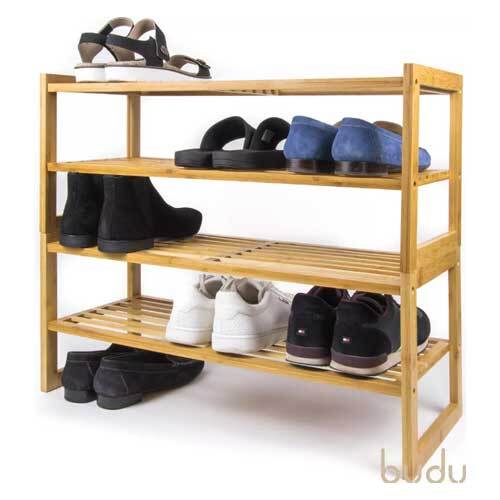 Kvalitets skoreol i stabelbart design, der kommer fra hollandske Budu. Skoreolen er fremstillet i bæredygtigt, miljøvenligt og 100% FSC-certificeret bambus. Robust skoreol med plads til ca. 6 par sko på hylderne og med mulighed for at stable flere reoler oven på hinanden, hvor vi anbefaler op til 3-4 stk.