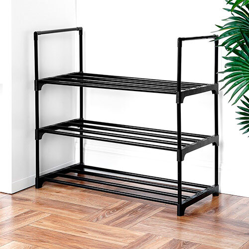 Funktionel skoreol med tre hylder, der er fremstillet i metal med sort pulverlakering og passer ind i de fleste hjem med dens simple design. Den har plads til ca. 9-12 par sko og giver dig en praktisk måde til at få styr på skoene i entréen, hvor du hurtigt og nemt kan få et overblik over udvalget. Skoreolen er nem at samle og leveres med alt, hvad du skal bruge.
