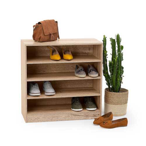 Robust og funktionel skoreol i moderne design, der kommer fra franske 5five. Skoreolen er fremstillet i lyst MDF træ og forsynet med 4 hylder, hvor der er plads til ca. 12 par sko afhængigt af størrelsen på dem. Praktisk måde at få styr på skoene i entréen, så de ikke står på gulvet og roder. Skoreolen er nem at samle og leveres med alt, hvad du skal bruge.