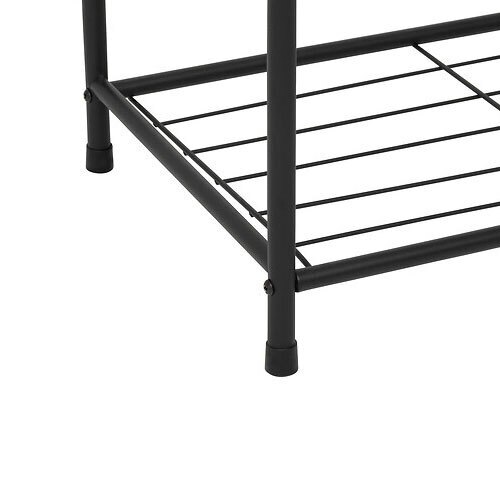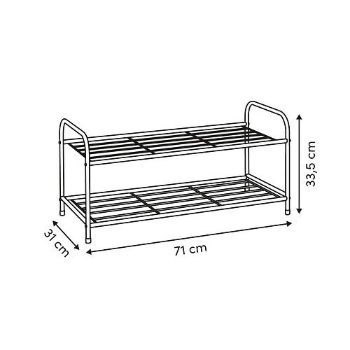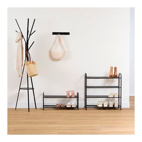 Funktionel og praktiske Metty skoreol med to hylder, der er fremstillet i metal med sort pulverlakering og passer ind i de fleste hjem med dens simple design. Den har plads til ca. 6 par sko og giver dig en praktisk måde til at få styr på skoene i entréen, hvor du hurtigt og nemt kan få et overblik over udvalget.