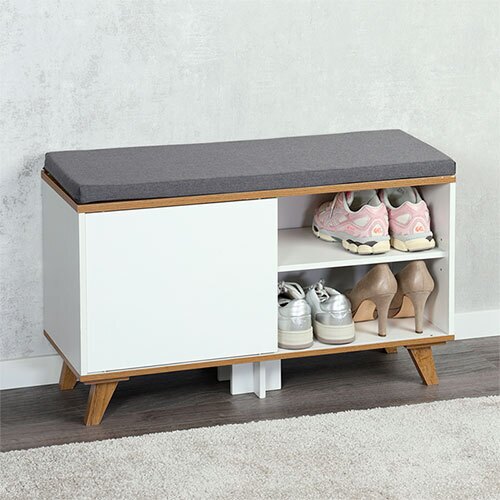 Kvalitets Nordic skobænk i praktisk og indbydende design, der kommer fra tyske Kesper. Skobænken er fremstillet i 100% FSC-certificerede spånplader med komfortabel siddeplads på toppen. Forsynet med skydelåge på fronten og så er den udstyret med midterhylde, der kan placeres i tre forskellige højder afhængigt af, hvad du har behov for.