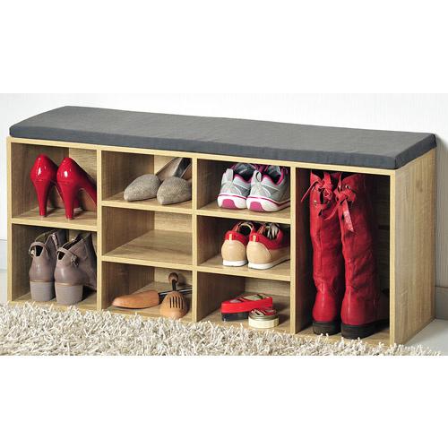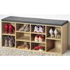 Robust skoreol i stilfuldt og moderne design i egestruktur. Skoreolen er fremstillet i FSC-certificerede spånplader med polstret siddeplads. Der er plads til ca. 12 par sko. Praktisk måde at få styr på skoene i entréen, hvor du også har en polstret siddeplads når der skal skiftes sko. Skoreolen er nem at samle og leveres med alt, hvad du skal bruge. Skruehuller afsluttes med miljøvenlige mærkater. Den yderste hylde på hver side er justerbar i højden.