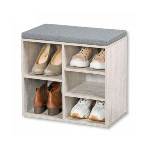 Robust skoreol i stilfuldt og moderne design fra tyske Kesper. Skoreolen er fremstillet i FSC-certificerede spånplader med polstret siddeplads og nuanceret hvidt laminat. Der er plads til ca. 5 par sko. Praktisk måde at få styr på skoene i entréen, hvor du også har en polstret siddeplads når der skal skiftes sko. Skoreolen er nem at samle og leveres med alt hvad du skal bruge. Skruehuller afsluttes med miljøvenlige mærkater.