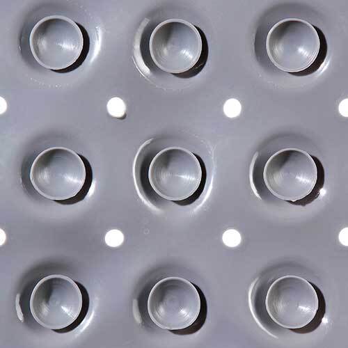 Gør dit badeværelse mere sikkert med en skridsikker bademåtte til brusekabine, der kommer fra franske 5five. Bademåtten er fremstillet i 100% ftalatfri PVC og udsyret med mange kraftige sugekopper, der giver et sikkert greb til gulvet. Velegnet til brug både i brusekabine og på gulvet foran brusekabinen. Nem at rengøre med udelukkende varmt vand.