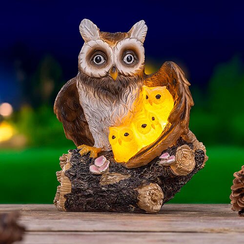 Dekorativ ugle med unger, der er forsynet med 3 stk. varmhvide LED lys og fremstillet i plast. Her får du en energirigtig og prisbillig havebelysning, der skaber en utrolig hyggelig stemning. Forsynet med tænd/sluk knap.