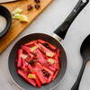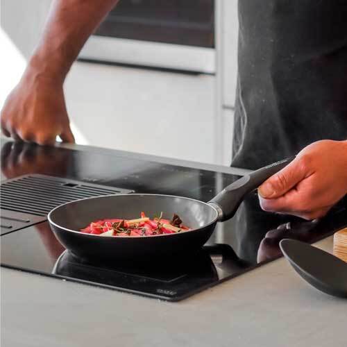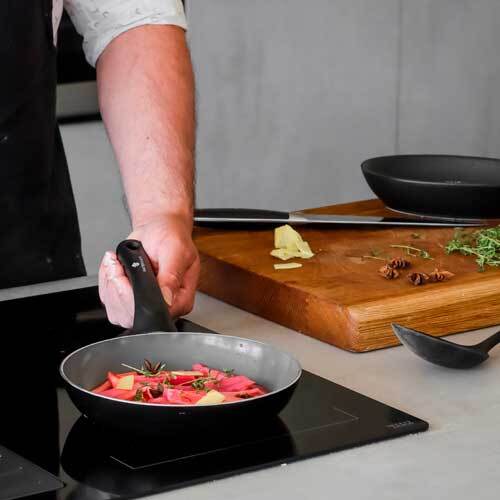 Forsynet med ridsefast non-stick belægning, der er så effektiv, at du kan nøjes med begrænset brug af olie under madlavningen. Konstruktionen af aluminium sikrer ligeledes en hurtig og jævn opvarmning af stegepanden, hvilket gør den energibesparende og tidsbesparende. Der er anvendt 19 genbrugsdåser til fremstilling af denne stegepande.