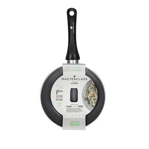 Her kan du få fingrene i den helt nye, innovative og langtidsholdbare Can-to-Pan stegepande fra engelske KitchenCraft. Can-to-Pan serien bringer køkkentilbehøret ind i en grøn fremtid, da serien er fremstillet af 70% genbrugt aluminium fra dåser. Du får stadig en præcis lige så robust og pålidelig stegepande som var det et hvilket som helst andet MasterClass produkt. Stegepanden har en solid letvægts konstruktion, der gør den helt perfekt til madlavning i hverdagene.