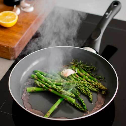 Forsynet med ridsefast non-stick belægning, der er så effektiv, at du kan nøjes med begrænset brug af olie under madlavningen. Konstruktionen af aluminium sikrer ligeledes en hurtig og jævn opvarmning af stegepanden, hvilket gør den energibesparende og tidsbesparende. Der er anvendt 37 genbrugsdåser til fremstilling af denne stegepande.
