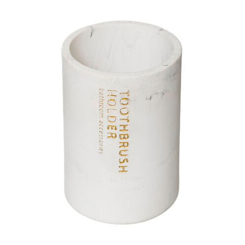 Attraktiv Lea tandbørsteholder, der er fremstillet i polyresin med guldfarvet skrift. Kommer fra franske 5five og er forsynet med marmor lignende udseende.