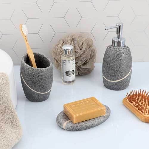 Smuk Stone tandbørsteholder, der er fremstillet i polyresin med naturstens design. Moderne badeværelsesserie fra franske Tendance, hvor du kan tilkøbe en hel kollektion af matchende tilbehør til badeværelset.