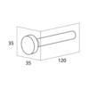 Toiletpapirholderen måler ca. 3,5 x 3,5 x 12 cm.