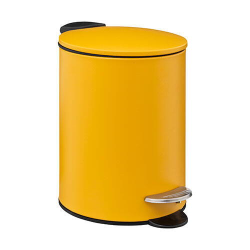 Lille og attraktiv pedalspand fra franske 5five i stilrent design med soft close funktion. Fremstillet i robust metal i gul farve og forsynet med udtagelig sort spand i plast med metalhank for løft. Materialetykkelse på 0,25 mm.