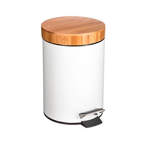 Praktisk toiletspand, der er fremstillet i metal med hvid pulverlakering og bambus låg, fra franske 5five. Forsynet med fodpedal på forsiden og metal hank på bagsiden til at løfte spanden i. Passer perfekt ind på mange badeværelser med dens tidløse design. Rummer op til 3 liter.
