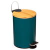 Praktisk toiletspand, der er fremstillet i metal med petrolfarvet pulverlakering og bambus låg, fra franske 5five. Forsynet med soft close lukkesystem og fodpedal på forsiden med metal hank på bagsiden til at løfte spanden i. Passer perfekt ind på mange badeværelser med dens tidløse design. Rummer op til 3 liter.