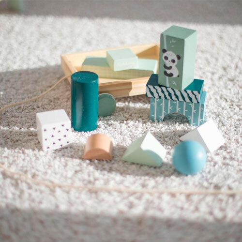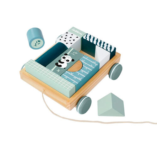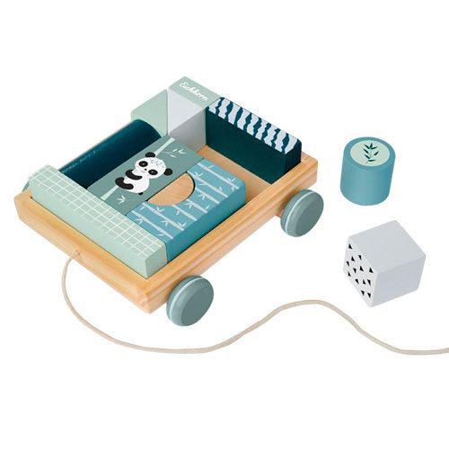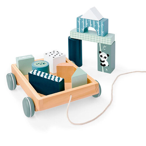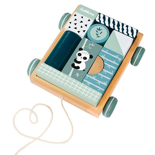 Underholdende sæt med trækvogn og byggeklodser, der består af 12 dele i alt, som lader dit barn slippe fantasien løs med kreativ leg. Byggeklodser og vogn er fremstillet i 100% FSC-certificeret træ og forsynet med panda temafarver, der kommer fra tyske Eichhorn. Et mere miljøvenligt alternativ, da det er fremstillet i træ og kan holde i mange generationer.