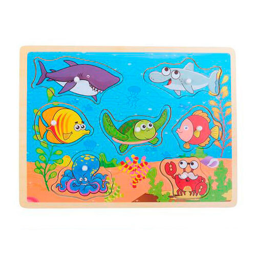 Stimulerende puslespil med 8 brikker, der træner dit barns finmotoriske færdigheder ved at løfte og påsætte brikkerne i bundpladen. Puslespillet er fremstillet i træ med greb i hver brik, der er udformet som forskellige dyr. Et mere miljøvenligt alternativ fra Marionette, da puslespillet er fremstillet i 100% FSC-certificeret træ med pæne udskæringer og kan holde i mange generationer.