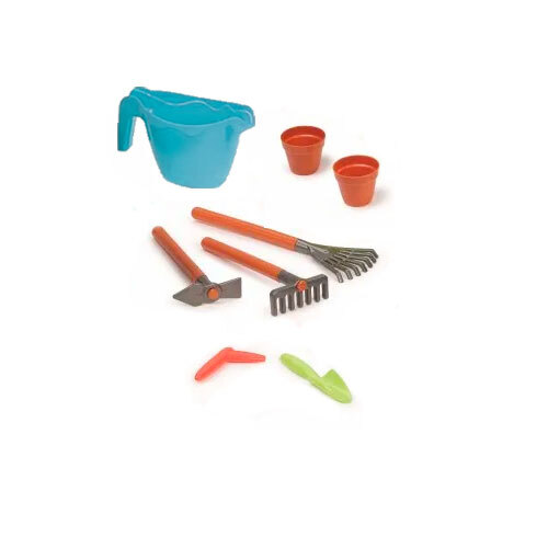 Klassisk havelegetøj med alt det nødvendige til en sjov dag i haven. I sættet finder du bl.a. en skovl, forskellige river, vandkande og spande. Fremstillet i holdbart plast, der kommer fra franske Atmosphera. Egnet til børn, der er ældre end 18 måneder.