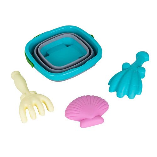 Klassisk sandkasselegetøj med alt det nødvendige til en sjov dag i sandkassen eller på stranden. Sættet leveres i strandtema, der er fremstillet i robust pp-plast og kommer fra tyske HI.