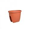 Bliv klar til forår og sommer med denne praktiske og dekorative terracottafarvede blomsterkasse i smart rundt design. Fremstillet i vejrbestandigt kvalitets plast. Velegnet til brug på rækværk, gelænder, altankant m.m. med maksimal bredde på 6 cm. Blomsterkassen er forsynet med stor volume til jord og med åbning til afløb af regnvand.