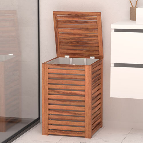 Akacietræ vasketøjskurv med låg - 65 L