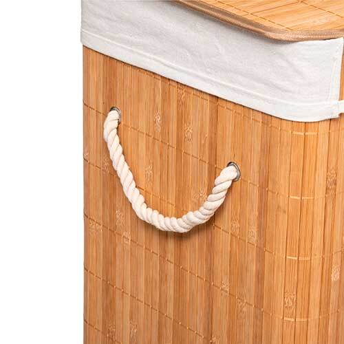 Denne smarte og funktionelle vasketøjskurv passer perfekt til badeværelset eller soveværelset. Vasketøjskurven er flot udført i bambus med ventilationshuller i bundpladen. Produceret hos franske 5five og fremstillet i bæredygtigt og miljøvenligt bambus med stofpose, bærehåndtag og låg. Vasketøjskurven kan klappes sammen når den ikke er i brug, så den fylder mindre.