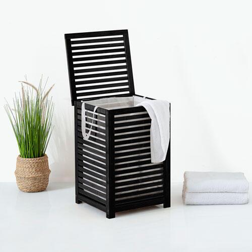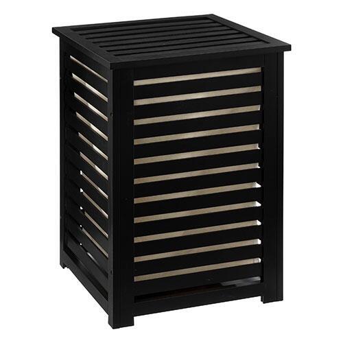 Kvalitets vasketøjskurv i tidløst og rummeligt design fra franske 5five. Fremstillet i robust MDF træ med sort lakering, samt aftagelig vasketøjspose i stof. Med denne rummelige vasketøjskurv bliver det nemt at transportere dit vasketøj fra kurv til maskine. Stabilt og lækkert design, der gør den til en fornøjelse at have i brug. Luk låget og ingen ser dit vasketøj. Selve vasketøjsposen kan have en mørk farve, den kan vaskes på 40 grader.