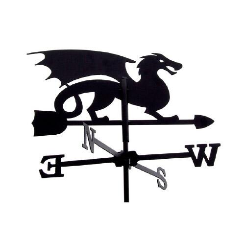 Vejrhane med drage i virkelig god kvalitet til opsætning på tagryg, altan eller i haven m.m. Fremstillet i 1,2 mm. stålplade med præcis laserskæring. Kraftig vejrbestandig overfladebehandling i sort pulverlak. Vejrhanen har flere monteringsmuligheder og derfor er det muligt at montere den på taget, men også at bruge den som havedekoration.