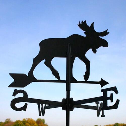 Vejrhane med elg i virkelig god kvalitet til opsætning på tagryg, altan eller i haven m.m. Fremstillet i 1,2 mm. stålplade med præcis laserskæring. Kraftig vejrbestandig overfladebehandling i sort pulverlak. Vejrhanen har flere monteringsmuligheder og derfor er det muligt at montere den på taget, men også at bruge den som havedekoration.
