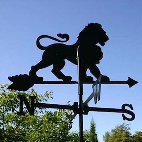 Vejrhane med løve i virkelig god kvalitet til opsætning på tagryg, altan eller i haven m.m. Fremstillet i 1,2 mm. stålplade med præcis laserskæring. Kraftig vejrbestandig overfladebehandling i sort pulverlak. Vejrhanen har flere monteringsmuligheder og derfor er det muligt at montere den på taget, men også at bruge den som havedekoration.